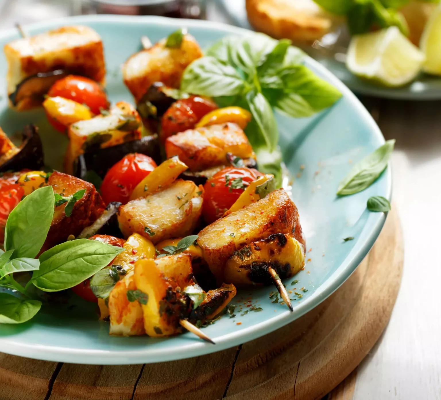 Brochettes de légumes et fromage halloumi